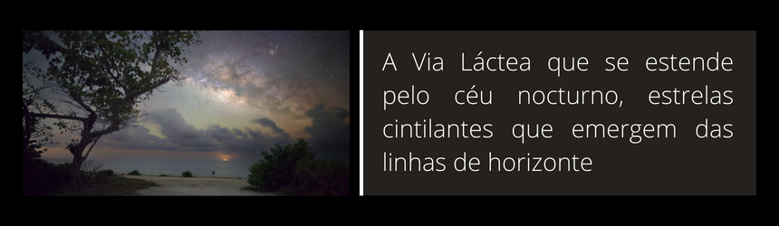 A Via Láctea que se estende pelo céu nocturno, estrelas cintilantes que emergem das linhas de horizonte